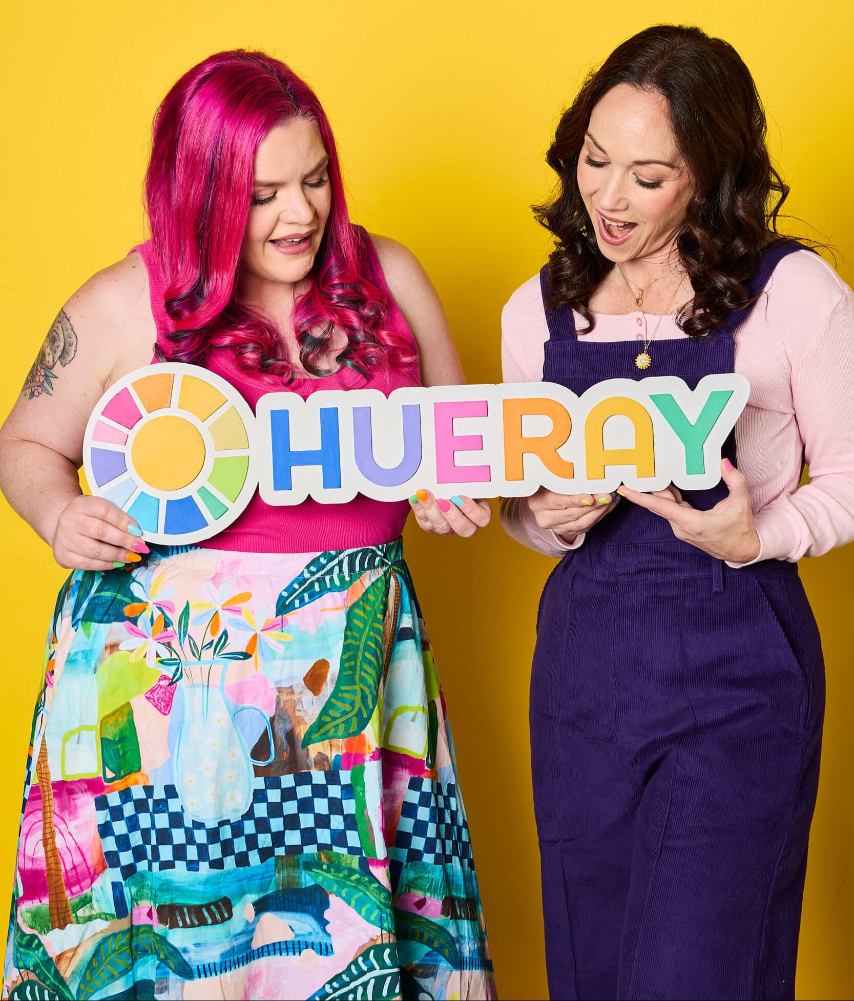 We spent months finding the perfect name for the new vision. After many (MANY) text exchanges, Zoom calls, shower ideas and the odd conversation with ChatGPT we came up with "Hueray". Hueray, pronounced 'hue-ray' (but also like 'hooray') means 'A celebration of colour', and we couldn't love it more.